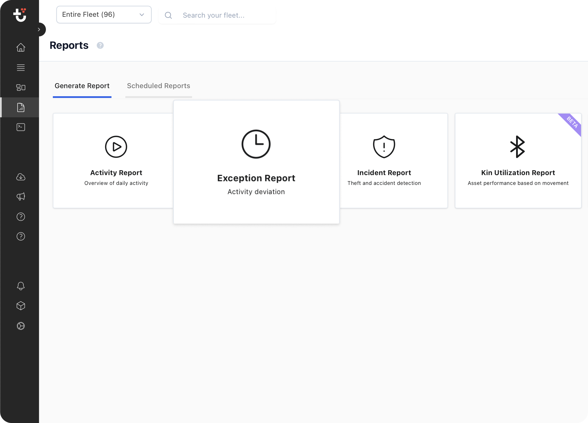 The Report Extension Point allows you to add a new report to the Reports screen within Trackunit Manager. The extension is controlled in the extension-manifest.ts file.