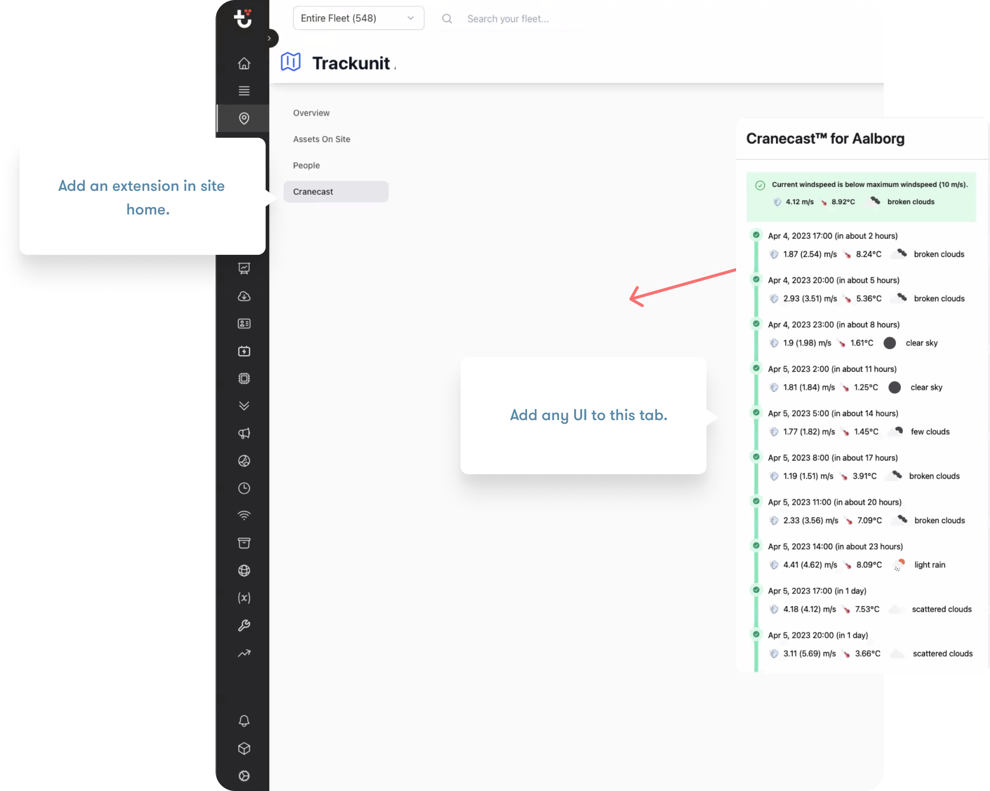 This extension point allows you to add a widget to Trackunit Manager.