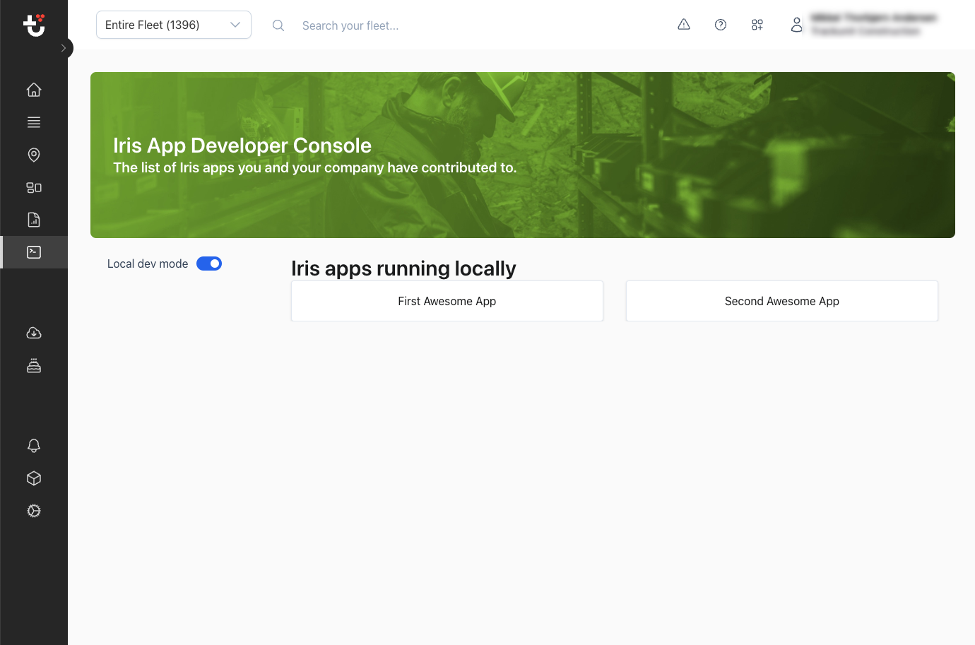 Using this url: <https://new.manager.trackunit.com/iris-sdk-portal#runLocal>.